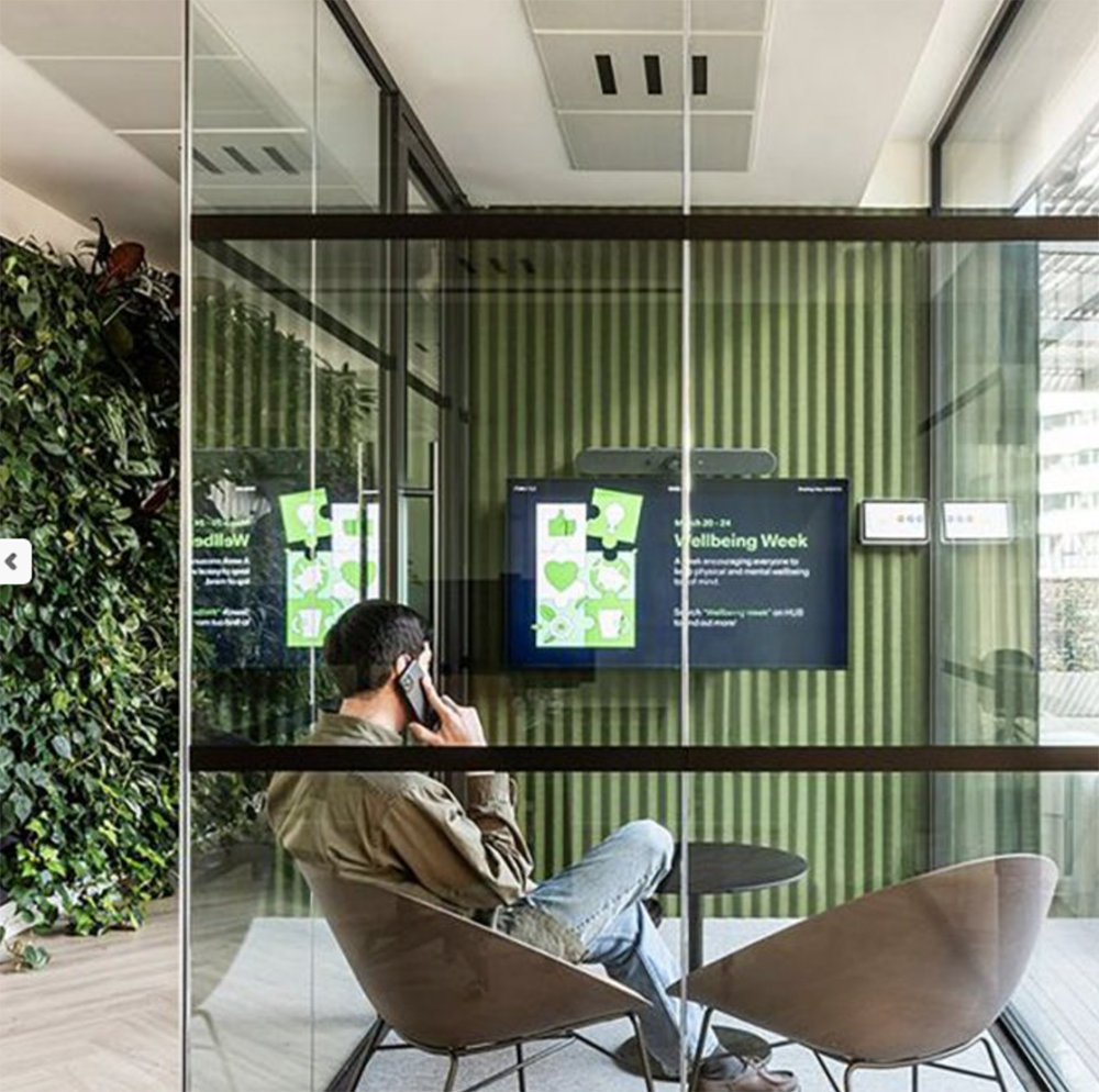 Slalom offers a collection of thermo bonded panels in a variety of fabrics , which can be paired with wall covering or other acoustical objects in the same fabric. This product suite offers acoustical comfort coupled with visual cohesion that’s hard to find anywhere else in the A&D market.